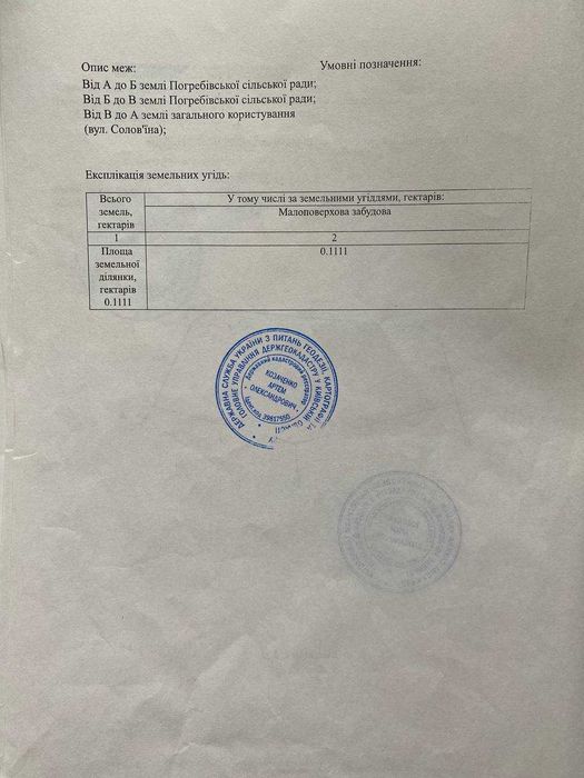 | Земельна ділянка: |