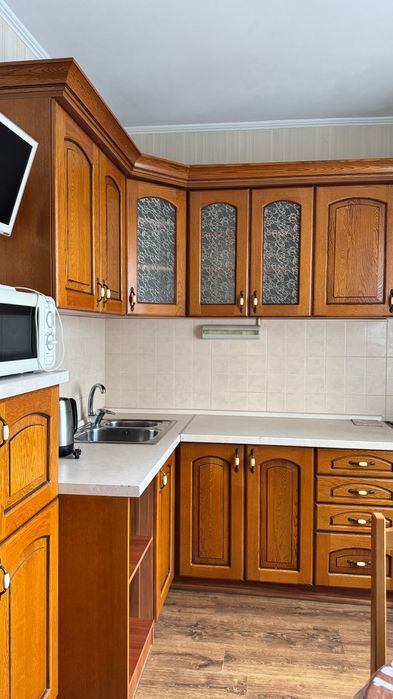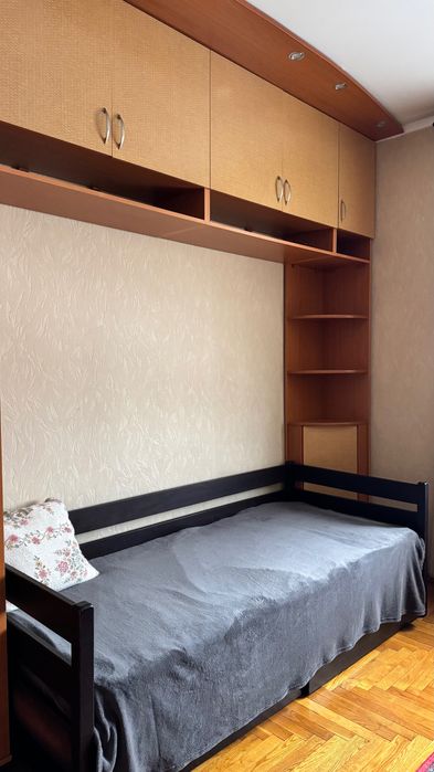Зручне планування квартири, три окремі кімнати та хол, як 4-а загальна кімната. Вбудована кухня, укомплектована приладами ( бойлер, холодильник, мікроволнова піч, електрична кухонна плита, витяжка), шафи купе, зручна кімната для навчання школяра, чи студента. У наявності також, пральна машинка.