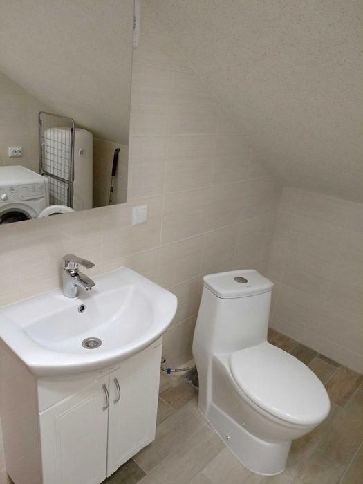В квартирі душова з підігрівами підлог, інтернет, кондиціонер, великє двох спальнє ліжко та всі необхідні меблі.