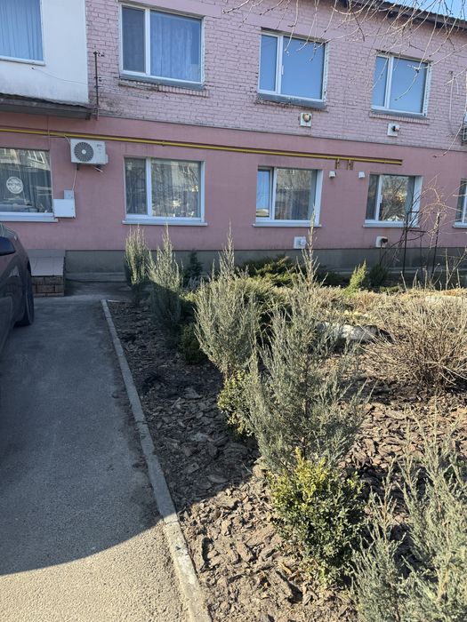 Біля будинку є прибудинкова територія під вікнами, на якій ростуть квіти та фруктові дерева.