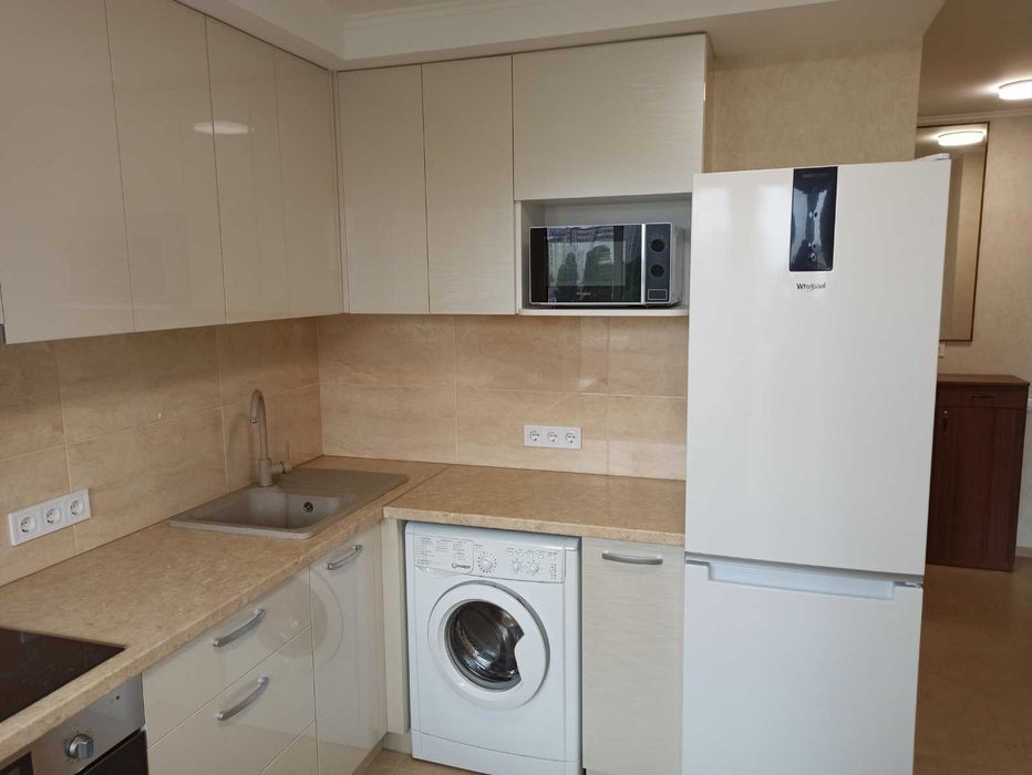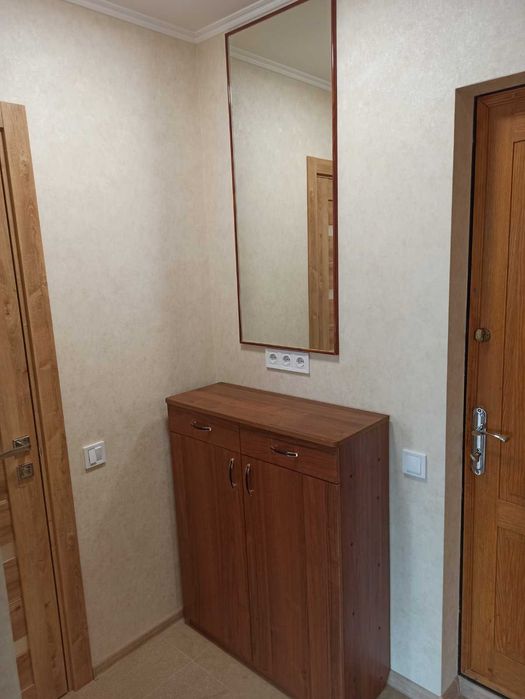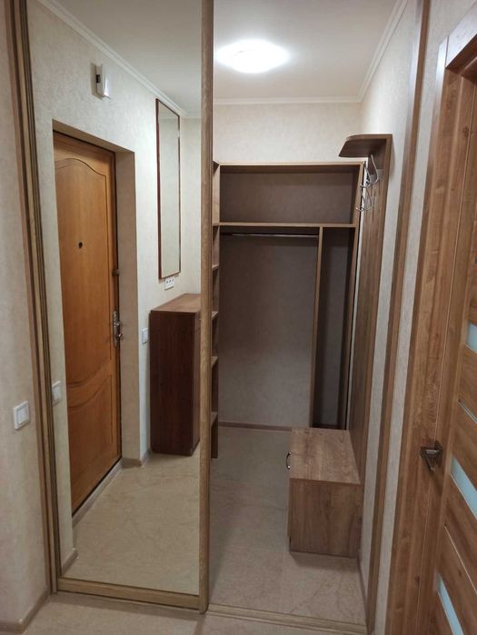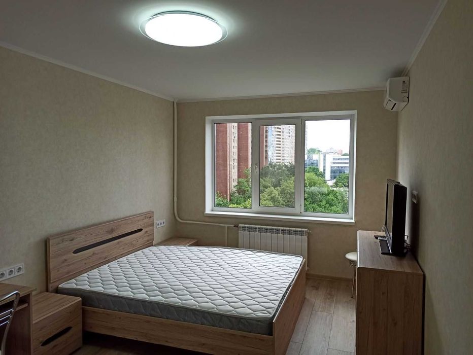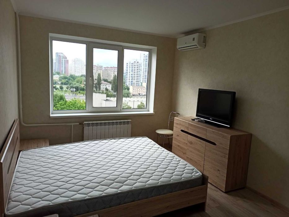Печерський; 1-к метро Деміївська; Голосієво, Київ, просп. Голосіївський, 11 (панельний будинок, 2 нові ліфти, консьєрж), 10/16 поверх, 34,15 кв.м загальна, кімната 16,2 кв.м, 1-х кімнатна квартира, сучасний якісний ремонт, всі меблі свіжі, (двоспальне ліжко), на вікнах ролети, велика окрема гардеробна, засклений балкон, кухня 8,1 кв.м (плита, витяжка, холодильник, мікрохвильова піч, посуд), також місце в кладовій (під замком) біля ліфту, техніка (пральна машина, кондиціонер, телевізор, бойлер), WiFi-інтернет, лічильники електрики, води, консьєрж, охайний будинковий хол, нові ліфти, доглянуте подвір’я (спортивні, дитячі майданчики, майданчик для вигулу собак, багато місця для паркування).