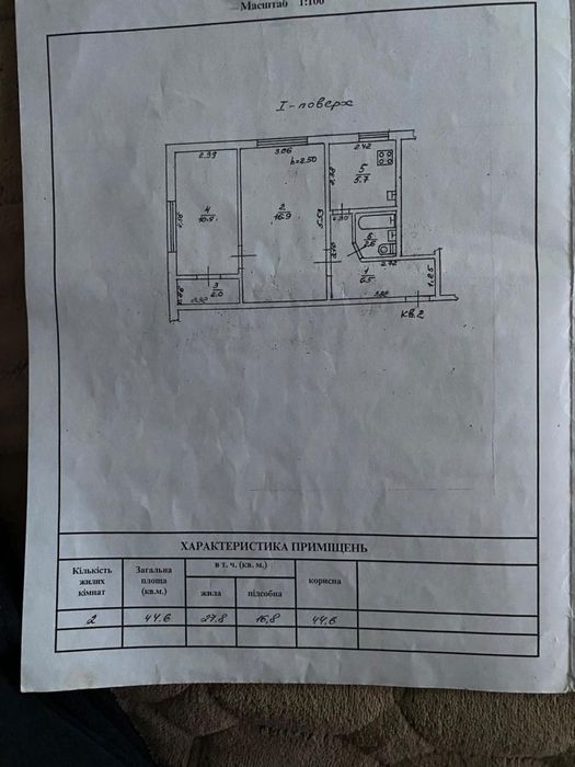 • Загальна площа: 44,6 м²