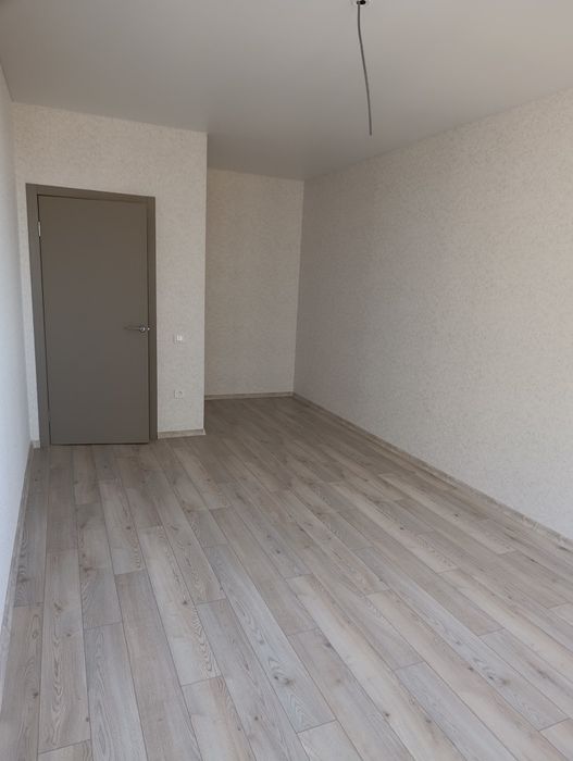 Дизайн квартиры выполнен в светлых тонах, межкомнатная дверь подобрана в современном стиле. В квартире натяжные потолки, обои, на кухне ,в санузле,в прихожей на полу плитка, в комнате ламинат.