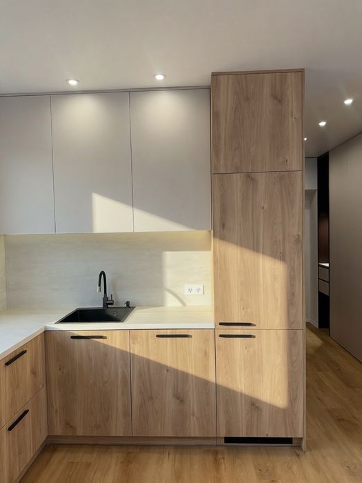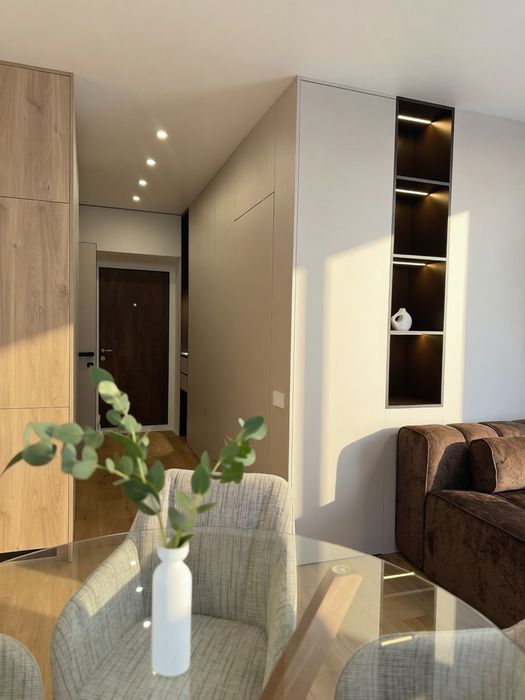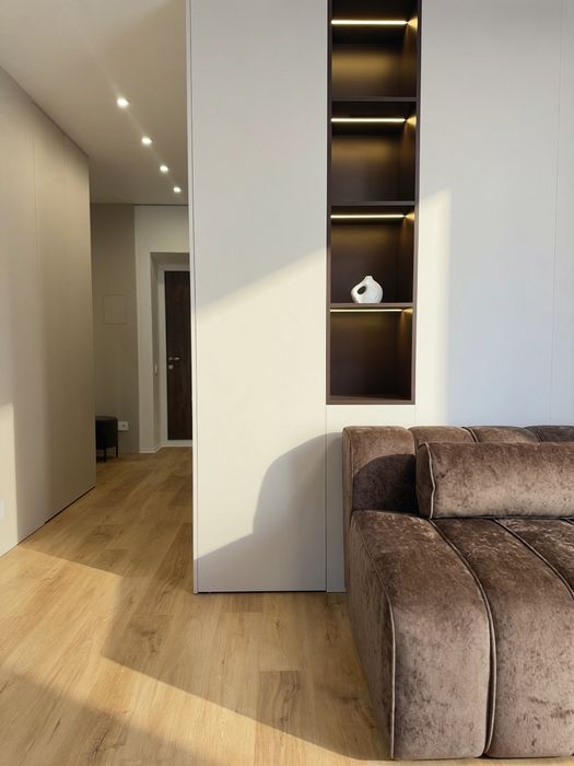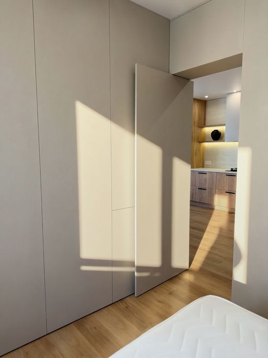 Вся квартира укомплектована меблями, які виконують функцію шаф. Такої кількості місць для зберігання в 1 кімнатній квартирі ви точно ніде не знайдете!