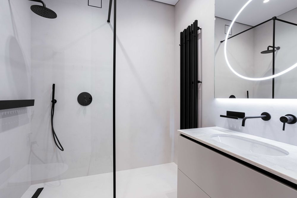 • преміальний мікроцемент на стінах та підлозі