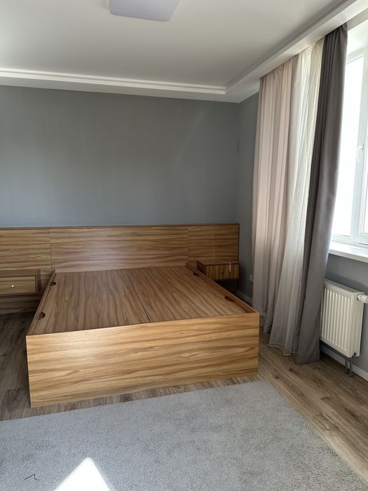 В квартирі є: вбудована шафа-купе, ліжко з нішами, кухня, техніка (холодильник, духова шафа, варильна поверхня, витяжка, бойлер, прально-сушильна машина, 2 телевізори) та ін.