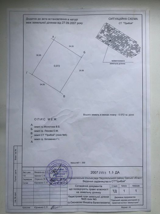 Продам свой участок срочно; Продам свой участок 0,072Га Одесская обл. село Новая Долина СТ «Прибой» 5 линия, Гос Акт и всё необходимые документы на руках. Рядом расположен рынок 7ой км. Возможен торг. 05******81 Михаил; кадастровий номер: ЯЕ N676321