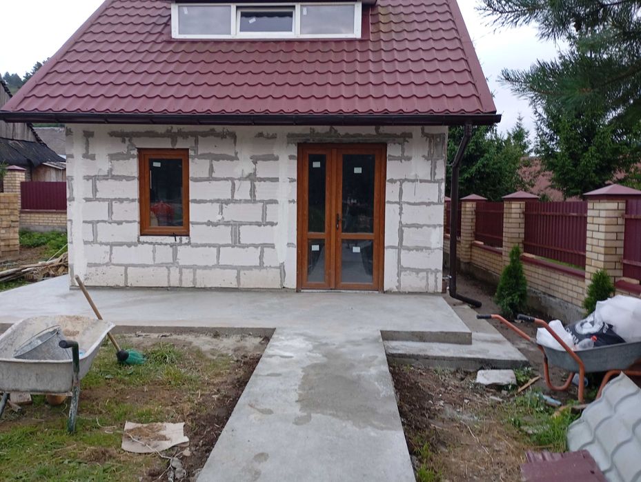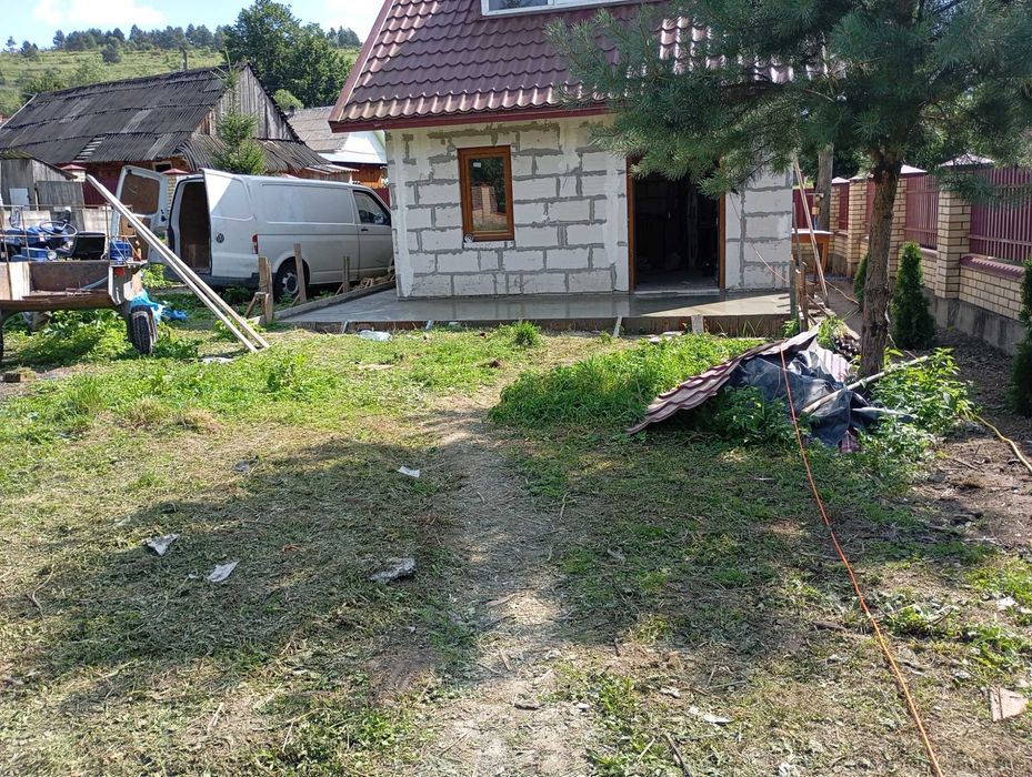 Продам земля під застройку. Є один зведений будинок та один фундамент.; Продам дом гарний мальовничий край. Поруч сосновий ліс гори річка рядом бази відпочинку. Джерельні води поруч траса Київ чоп . Поруч залізнична станція. Є своя з кважина . Багато чого вже зроблено в домі. Присутній торг . Документа в повному порядку.