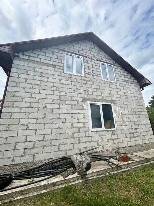 До будинку підведено електрику, воду (свердловина, нове обладнання), виведено каналізацію. Перший поверх вже спланований (кухня, ванна кімната, кабінет, вітальня, санвузол), другий поверх можете спланувати самі, можна робити як дві так і три кімнати. Нова огорожа.