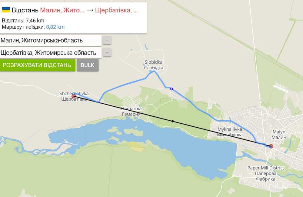 Відстань до м. Малин — 9 км