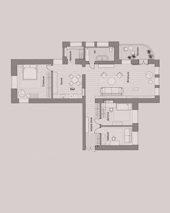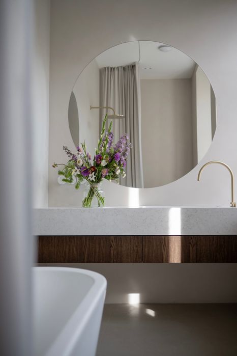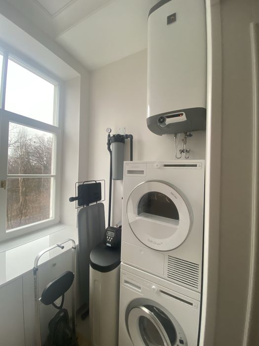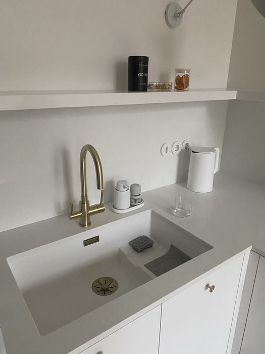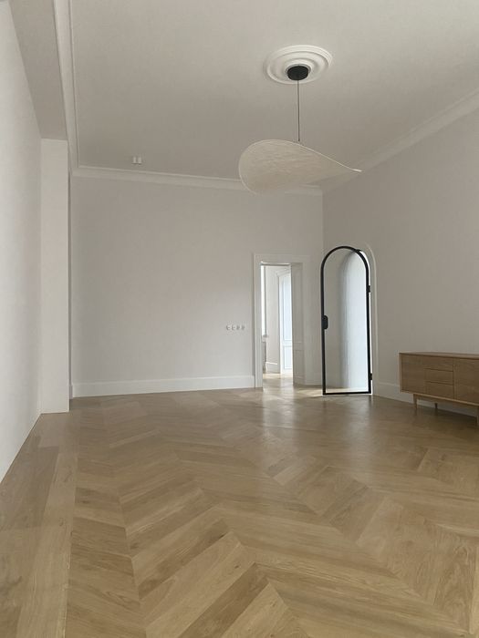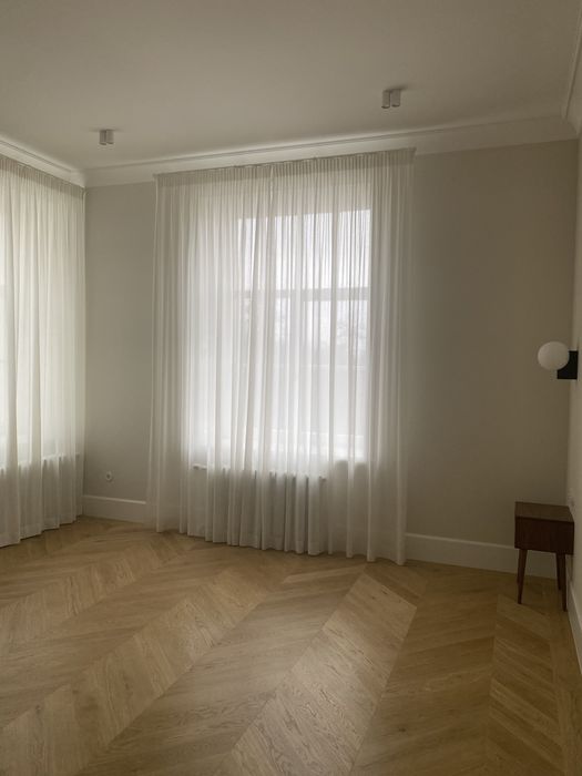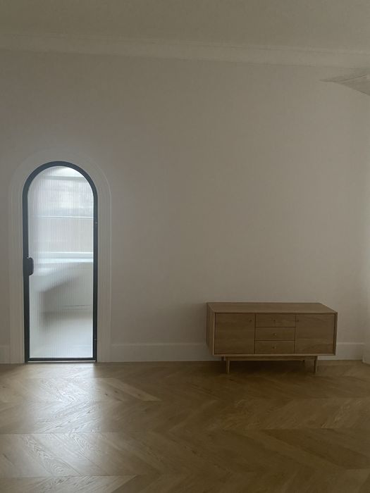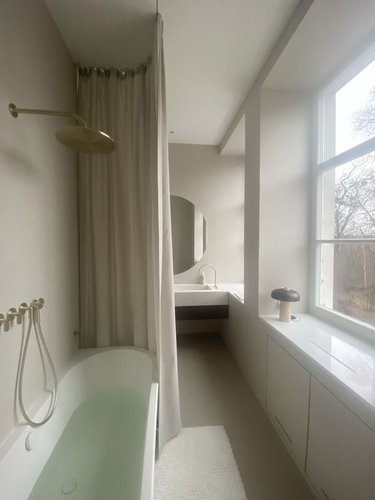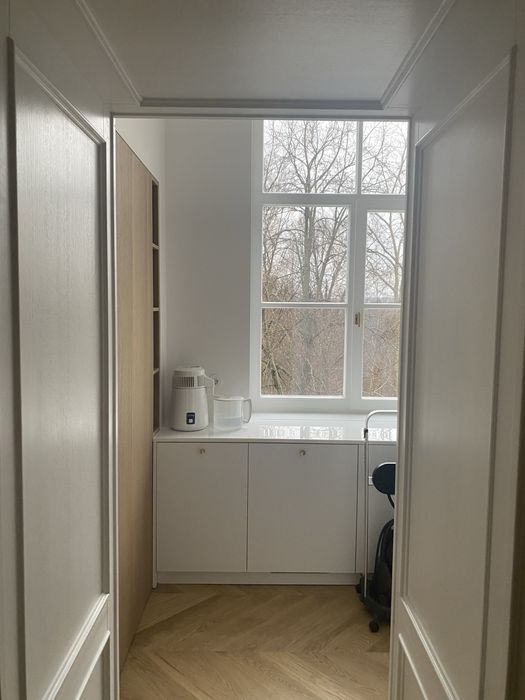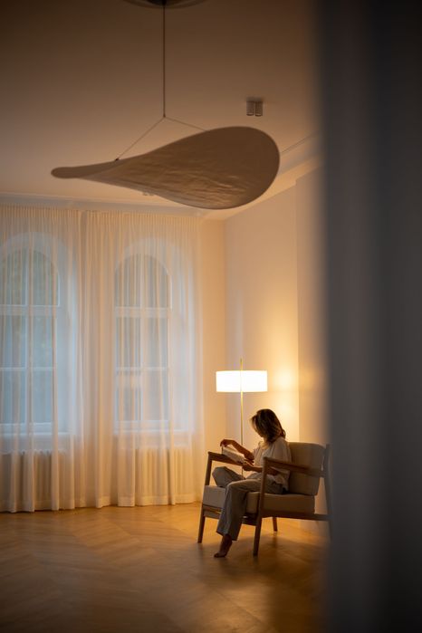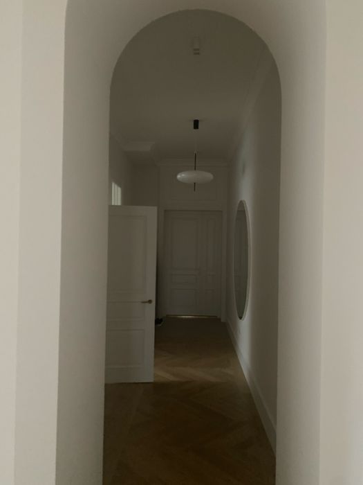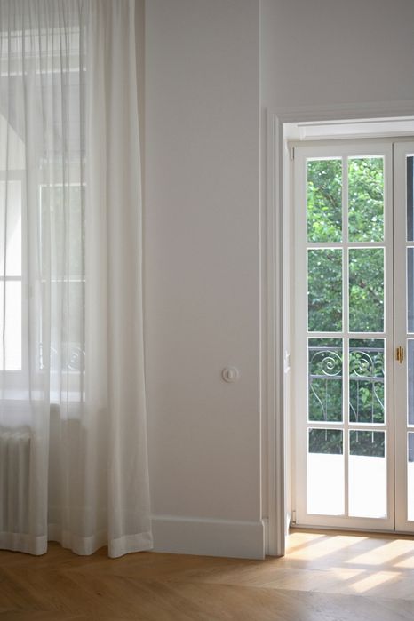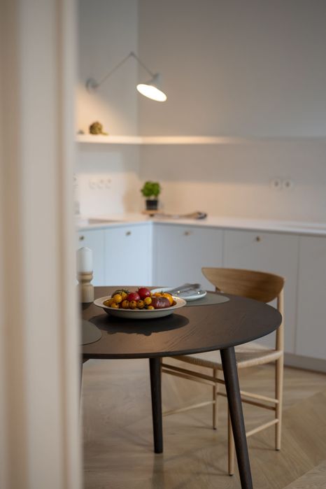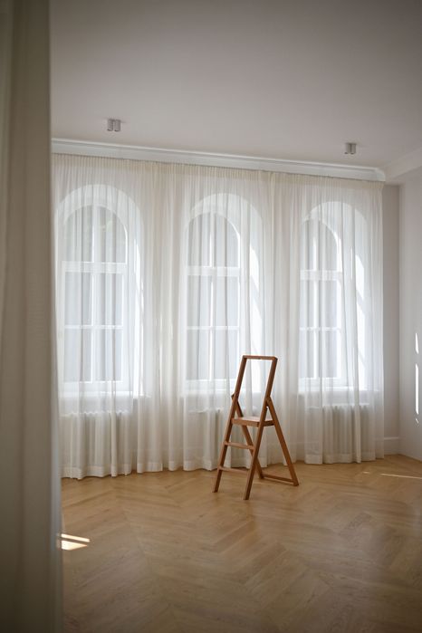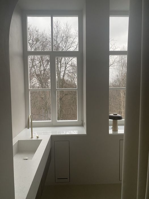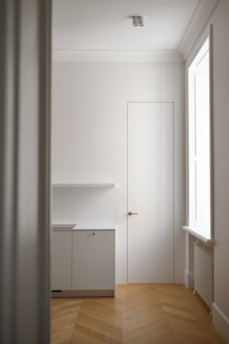 Архітектура будинку і помешкання закохує у себе з першого погляду, тож нам лишалося лише підкреслити велич оселі. І трішечки пофантазувати, як вона могла би виглядати за більш сприятливих життєвих обставин. Скажімо, у Данії. Про арку, білі стіни, дубовий паркет французькою ялинкою з відбивкою по периметру, латунні елементи та дерев’яні вікна, двері, віконні і дверні портали нашепотіла нам сама квартира. А ми дозволили магії відбутися. Звідси і лаконічність облаштування житла, мінімалізм та велика кількість світла і простору. Ми прагнули створити максимально функціональний та зручний для щоденного життя простір — з сучасною технікою, увагою до найменших деталей (як то дверна та віконна фурнітура Formani, непомітні білі матові карнизи, дбайливо доставлені з Лондону чи знайдена у Швеції шторка для ванної)