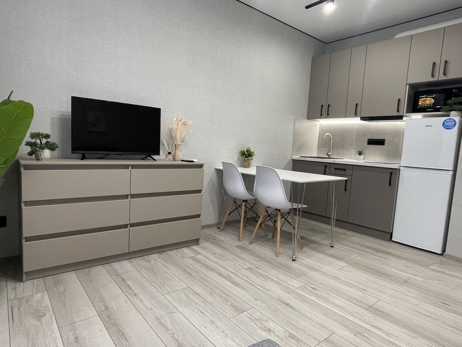 Власник! Продам квартиру студію в жк У Квартал! Новий ремонт; Продаю власну квартиру в У Кварталі площею 23.5 м2 3 поверх. На виході з квартири - відкритий басейн, в якому влітку можна плавати. Чудовий вид у дві з гарним озелененням.