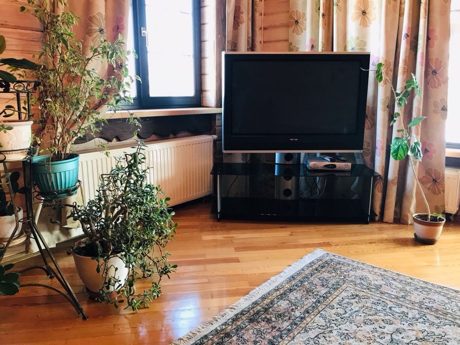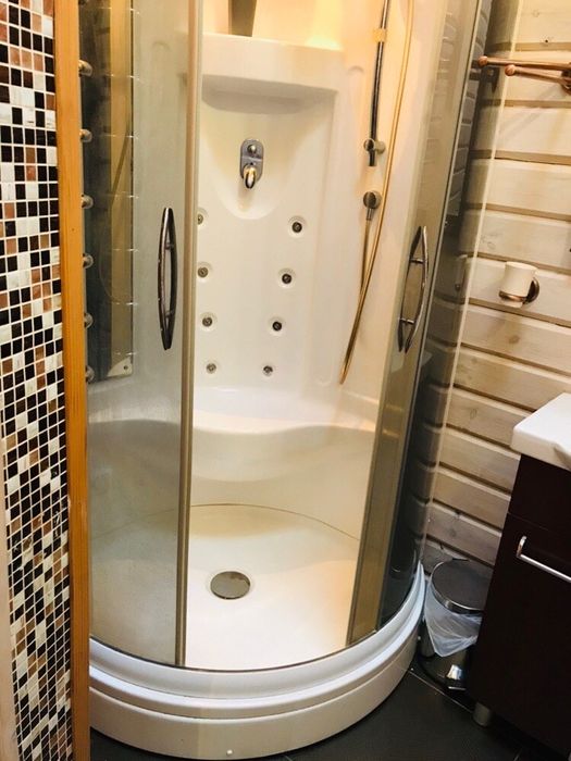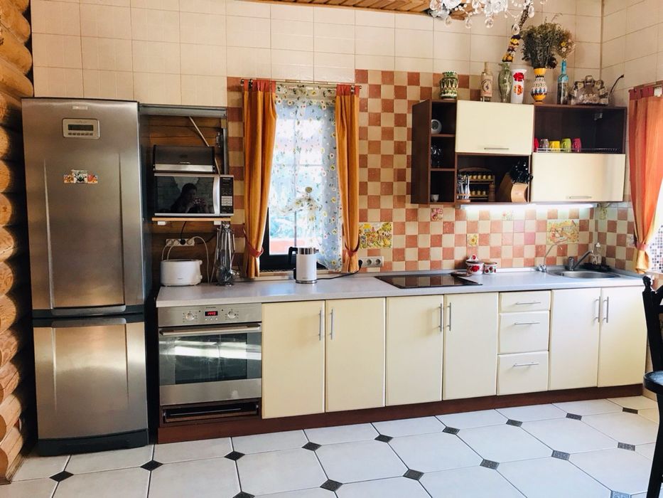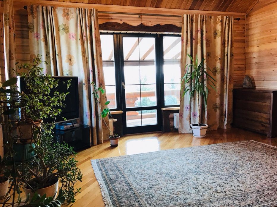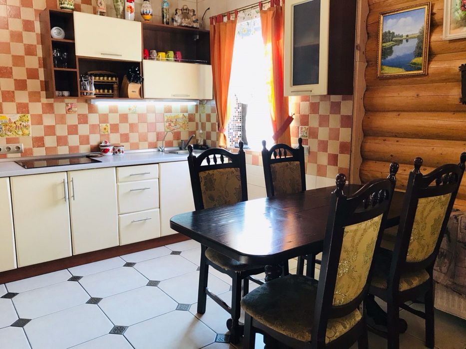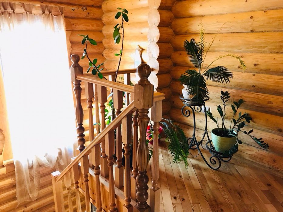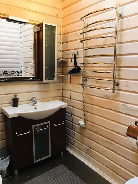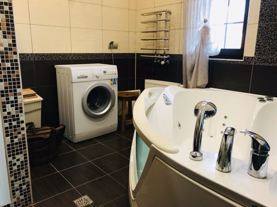 У основному будинку: 3 кімнати , з двох - балкони , 3 санвузли, гідромасажна ванна Balteco, душова кабіна з гідромасажем Balteco, баня 3,,0*2,5 на дровах, є відро водопад,камін з водяним контуром на 19квт Lechma, тепла підлога весь перший поверх, та с/у на другому поверсі, висота першого поверху 3.10, другого 2,8, підвал,