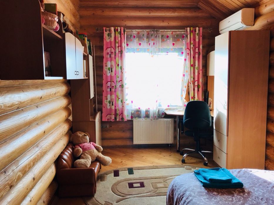 все оздоблення дуже високоякісне, на другому поверсі паркет з модрини, стеля зашита вагонкою екстра сорту, кухня зʼєднана з вітальнею з каміном, є технічне приміщення, у кожній кімнаті кондиціонер, дах покритий композитною металочерепицею Metrotile, система відеонагляду, скважина 120 м глибиною, дерев’яні склопакети,ворота з електроприводом, домофон, будинок та вся територія оснащена всім необхідним.