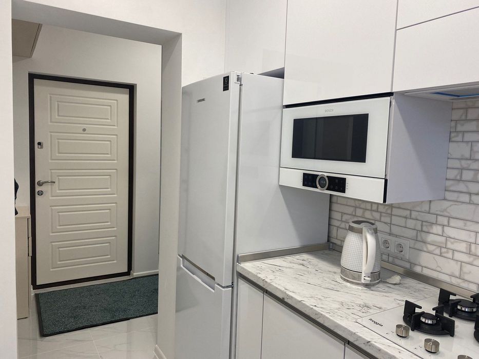 Квартира оборудована качественной техникой: холодильник Samsung; встроенная посудомоечная машина Bosch; встроенная микроволновка Bosch; итальянская газовая плита Freggia, итальянская электродуховка Freggia; кондиционер с wi-fi; итальянские смесители Remer. В спальне установлены: кровать 1,8х2 с подъёмным механизмом и качественным матрасом, 2 тумбочки, шкаф-купе. В квартире есть кладовка (5 м2.).