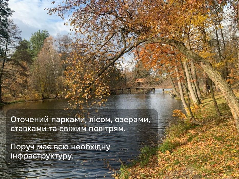 * Оточений парками, лісом, озерами, ставками та свіжим повітрям