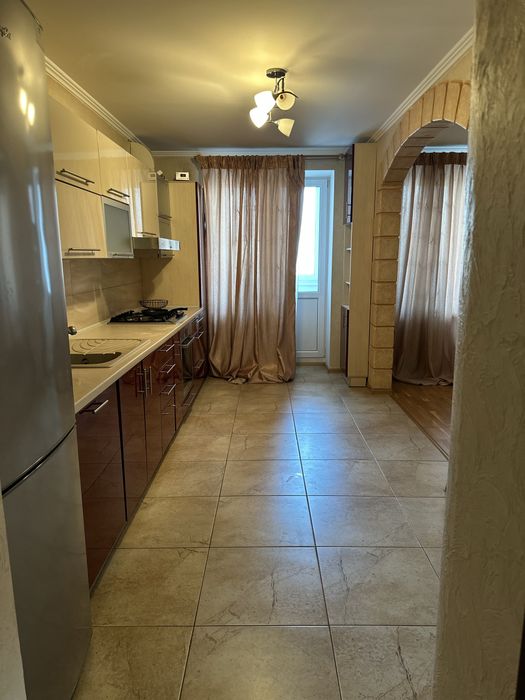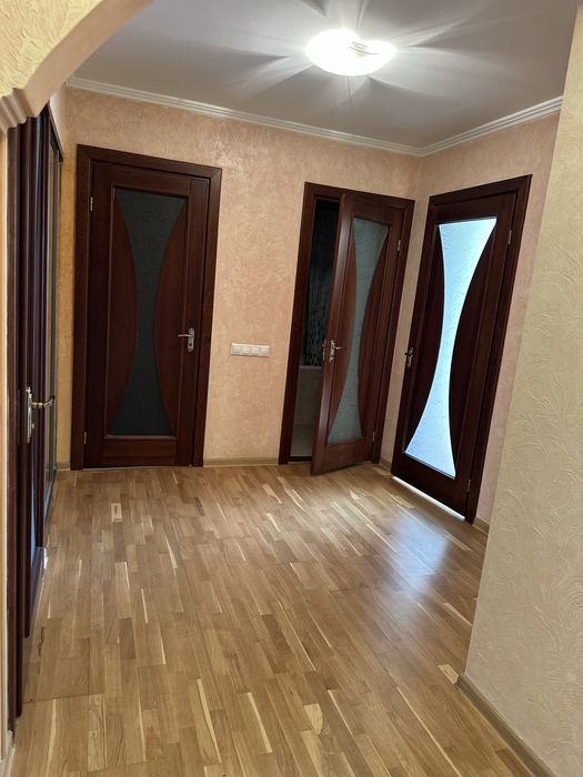 Трикімнатна квартира, перепланована у формат кухні-студії та двох окремих спалень,просторий коридор,влаштована шафа, та дві гарні великі шафи по іншим кімнатам)більше інформації можу скинути в особисті