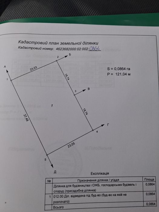 | Земельна ділянка: |