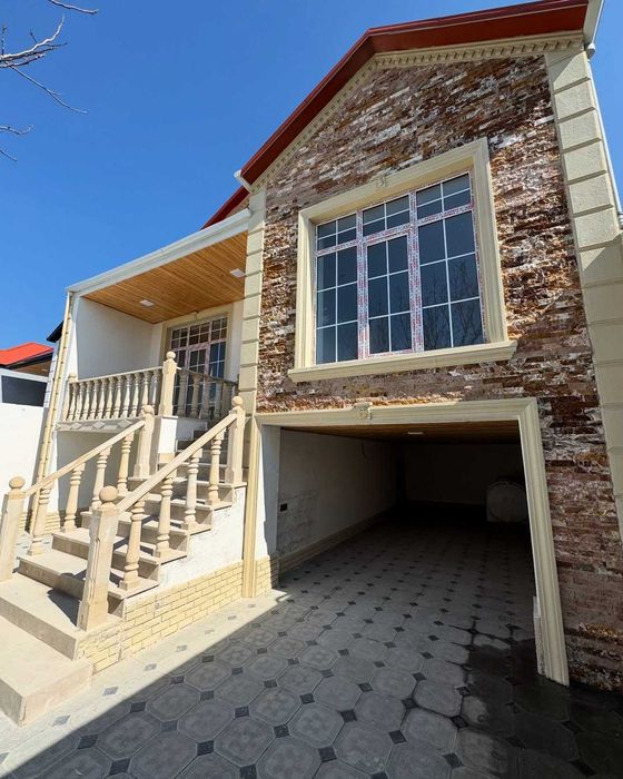 - Двух этажный Дом возведен на ленточном фундаменте, материал стен — газоблок, наружные стены — фасадная штукатурка с декоративными вставками, металлопластиковые окна, кровля — металлочерепица.