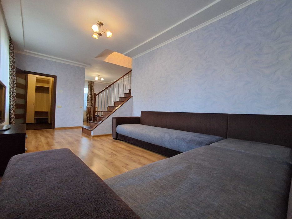 Дарницький; Здається просторий будинок; Просторий будинок у Дарницькому районі, біля лісу, неподалік два великих озера. Чисте повітря. Подвір'я огороджене високим парканом. Увесь двір засаджений газоном та ростуть плодові дерева. Перший поверх дуже просторий, у вітальній величезний диван, кухня-столова, санвузол, спальня кімната. На другому поверсі дві великі спальні, кожна з яких має власну міні-гардеробну для зручного зберігання речей. Свіжий ремонт та вся необхідна техніка. Парковка на два автомобілі. БЕЗ ТВАРИН. Виконана повна технічна підготовка під підключення генератора та системи EcoFlow. Вартість оренди – 35 000 + комунальні послуги.
