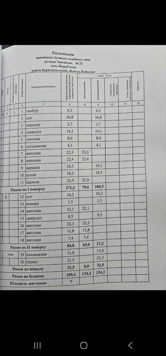 Загальна площа — 288,4 м², з них житлова — 134 м², підсобна — 154,2 м².