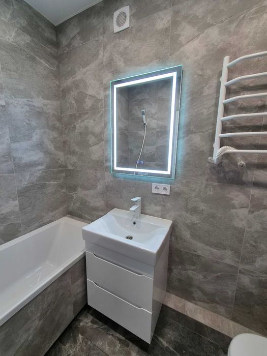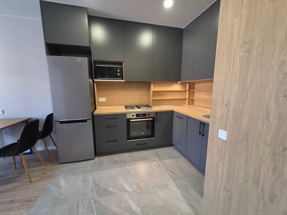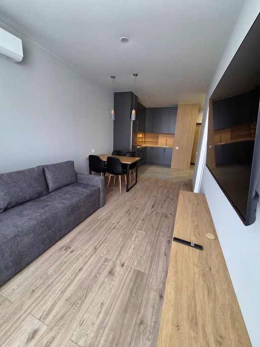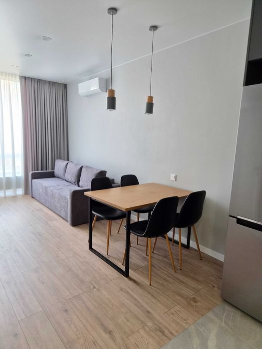 • Квартира укомплектована всіма необхідними меблями і технікою (ліжко з нішею для зберігання, шафи для зберігання речей, диван, кухонний стіл, стільці, пральна і сушильна машинки, посудомийна машинка, газова варильна поверхня, духова шафа, мікрохвильова піч, холодильник, кондиціонери в кожній кімнаті, телевізор 55`)