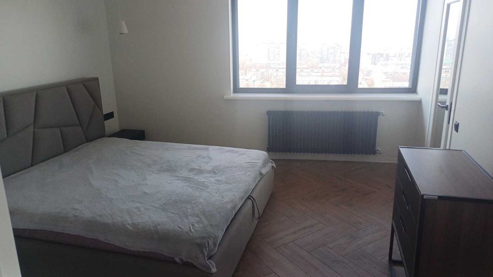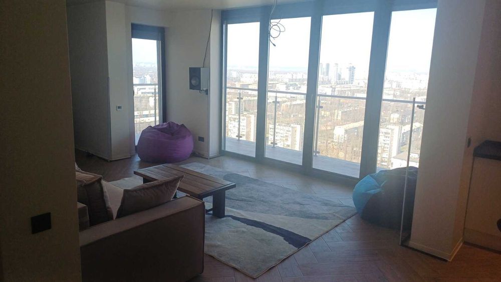 Дніпровський; Велика 2-кімнатна квартира преміум-класу в ЖК «Воскресенський»; Пропонується в оренду простора кутова 1-кімнатна квартира площею 89 м² після нового дизайнерського ремонту. Квартира розташована на 25-му поверсі з 26, що забезпечує максимальну приватність, тишу та панорамні краєвиди з декількох сторін.