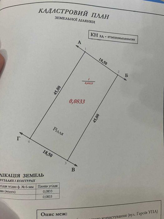| Земельна ділянка: |