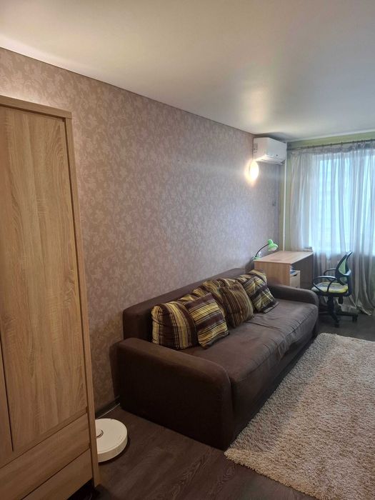 В квартире есть все для жизни: раскладной диван, двухспальная кровать, большой шкаф-купе, шкафы для вещей и книг, телевизор, кондиционер, холодильник, мультиварка, микроволновка и т.д.