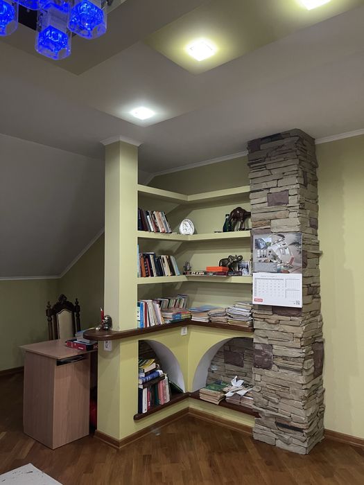 На другому поверсі: дві спальні, кабінет, ванна кімната з ванною і душем, кімната з фортепіано, гардеробна, вихід на горище.