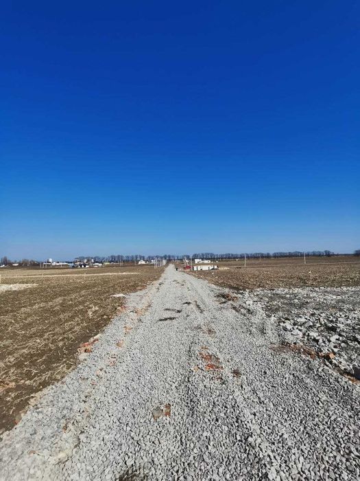 Ділянка рівна, виконано геодезію. Дороги відсипані, електромережа ДТЕК проходить по фасаду.