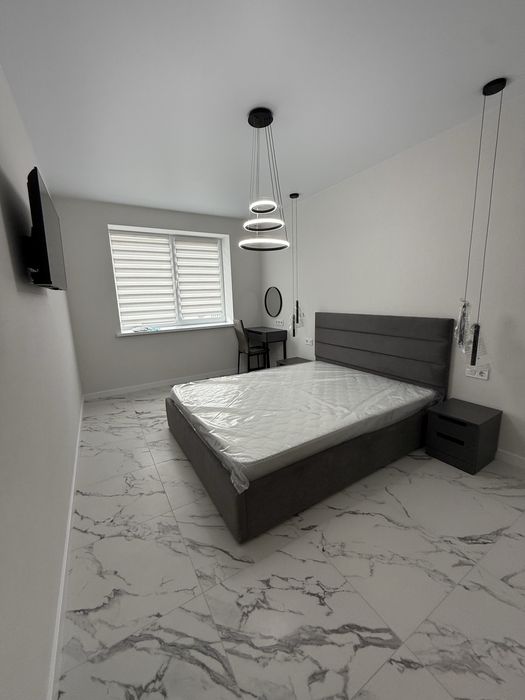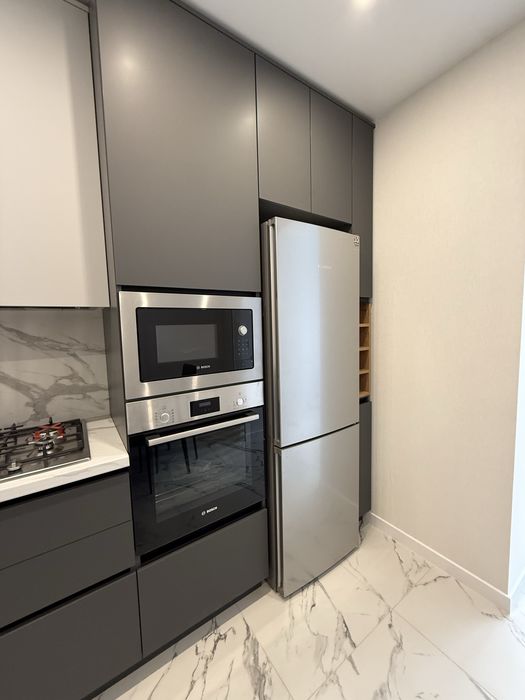 Житній ринок; Оренда:Нова квартира з ремонтом та побутовою технікою ЖК "Домашній 2"; Квартира площею 44,9 м2, розташована на 8 поверсі. Квартира 1-кімнатна, складається з кухні, спальної кімнати, гардеробної кімнати, балкону та ванної кімнати. В квартирі сучасний ремонт виконаний з якісних матеріалів. Квартира оснащена кондиціонером та побутовою технікою Bosch, а саме: холодильником з нижньою морозильною камерою, газовою варильною поверхнею, вбудовуваною електричною духовою шафою, посудомийною машиною, мікрохвильовою піччю пральною машиною. Спальна кімната з двоспальним ліжком, ортопедичним матрасом, двома приліжковими тумбами, телевізором. Гардеробна кімната оснащена зручними меблями і великим дзеркалом. У ванній кімнаті розташована пральна машина, шафа для зберігання, душова система із душовою кабіною. На балконі встановлений котел, що міститься у спеціальній шафі. Кухня оснащена новою вищевказаною технікою, зручними шафами для зберігання посуду із вмонтованою підсвіткою, розкладним столом, чотирма стільцями, телевізором. ЖК «Домашній 2» - це сучасна та удосконалена версія добре відомого житомирянам житлового комплексу «Домашній» від будівельної компанії «АртХаус Груп». Комплекс складається з одного10-поверхового будинку комфорт класу, розташованого в селі Оліївка. Розвинена інфраструктура комплексу та району в цілому, безпосередня близькість до центру міста зробить проживання комфортним, безпечним та зручним. При тому ЖК «Домашній 2» залишається у затишній та спокійній частині міста. На прибудинковій території сплановано зелені зони, зони для відпочинку та дитячі ігрові майданчики. А закрита територія від автомобілів дозволить мешканцям тут безпечно себе почувати. Власники авто можуть скористатись індивідуальним або гостьовим паркуванням.