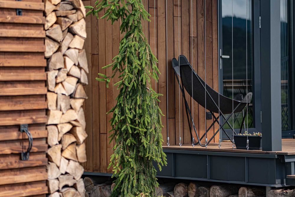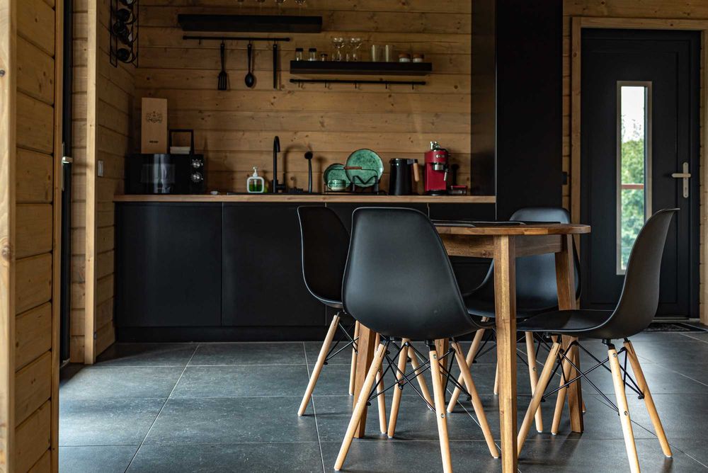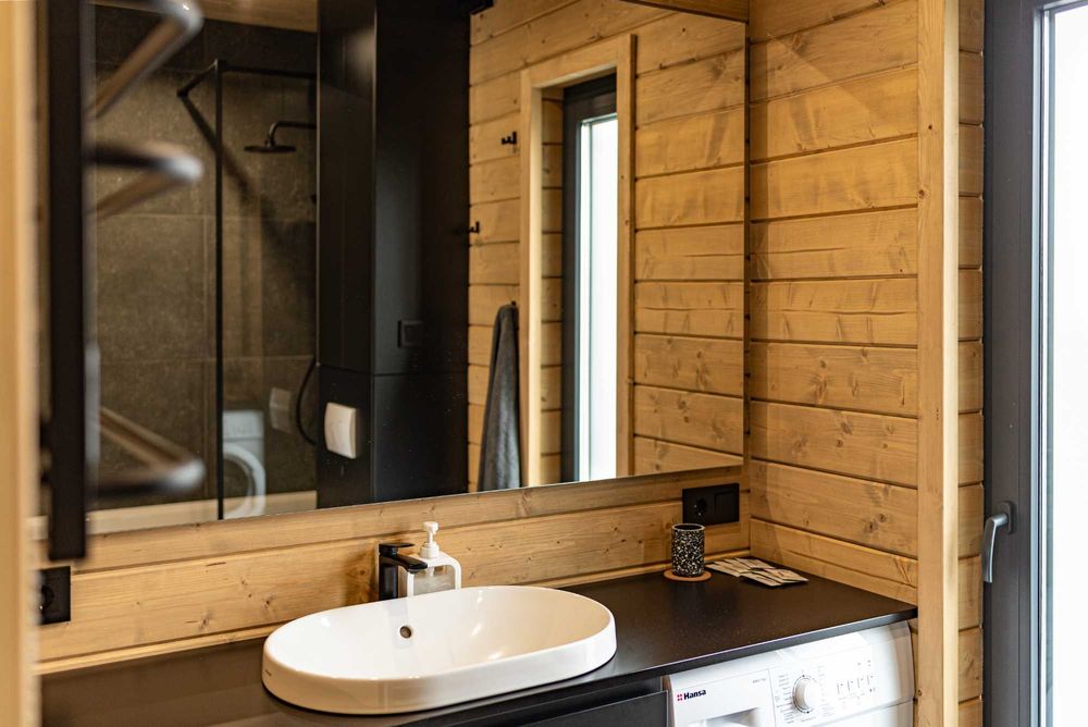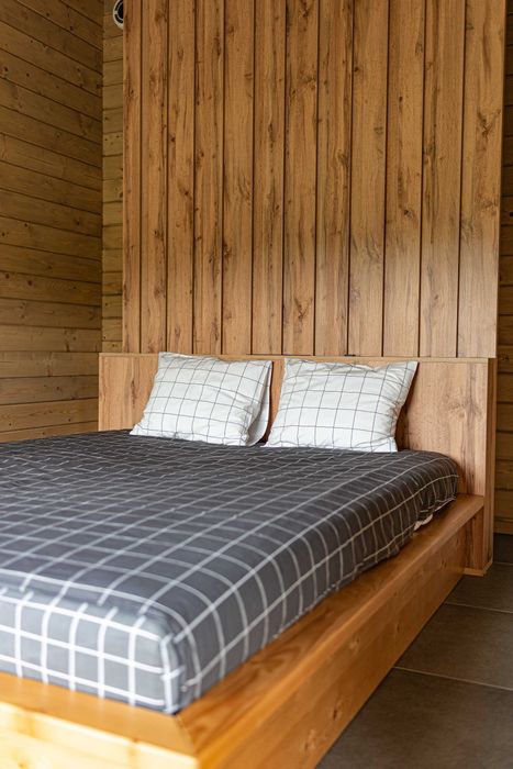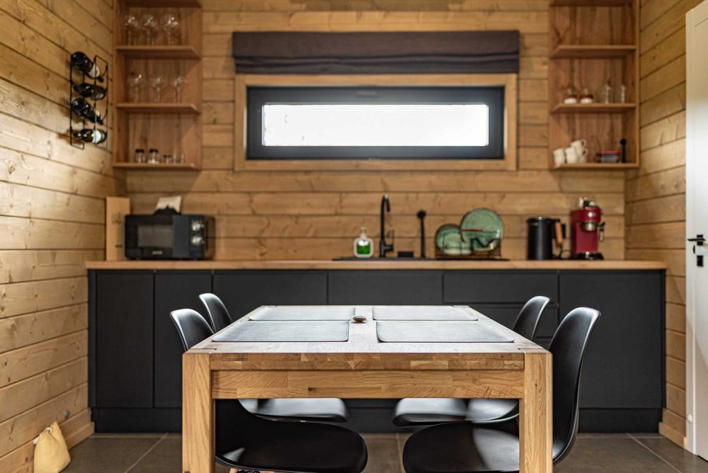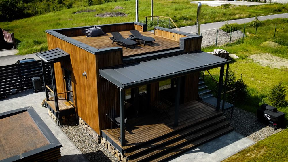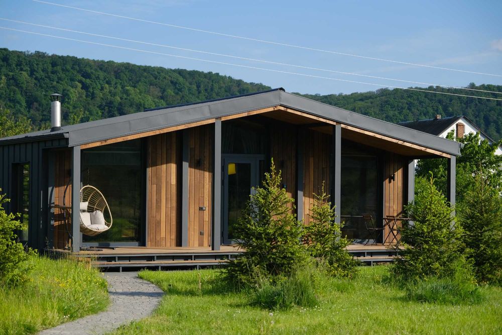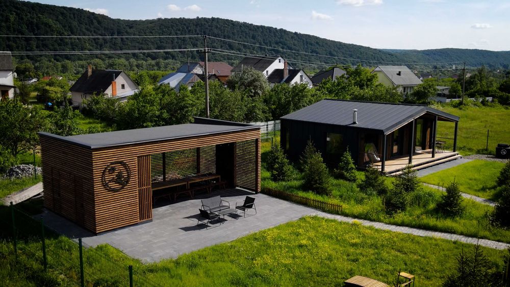 Доступні для бронювання два будинки на 5 і 3 гостей виконані з якісних матеріалів та містять усе необхідне для комфортного проживання, у тому числі на довгий термін.