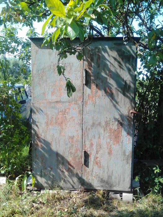 На ділянці є металевий контейнер з невеликим погрібцем для зберігання інструменту.
