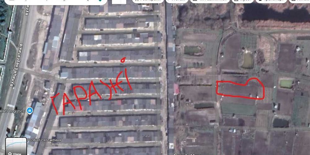 Недалеко від ділянки гаражі.