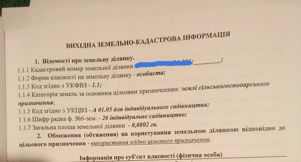 | Земельна ділянка: |