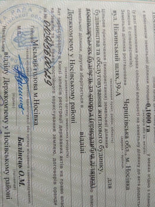 | Земельна ділянка: |