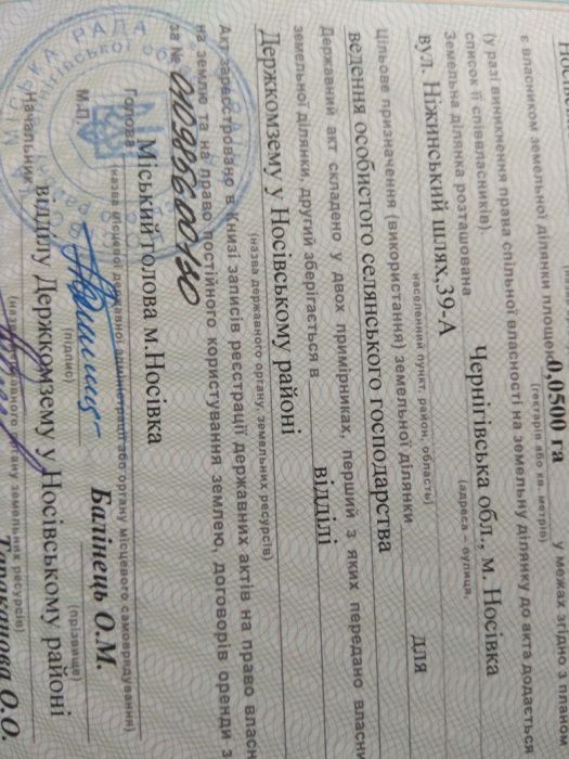 Участок фасад носовка рядом с центром по улице Нежинский шлях; Продам два участка 5 и 10 соток над дорогой не далеко от центра там где футбольное поле Нежинский шлях 39а. Возможен обмен
