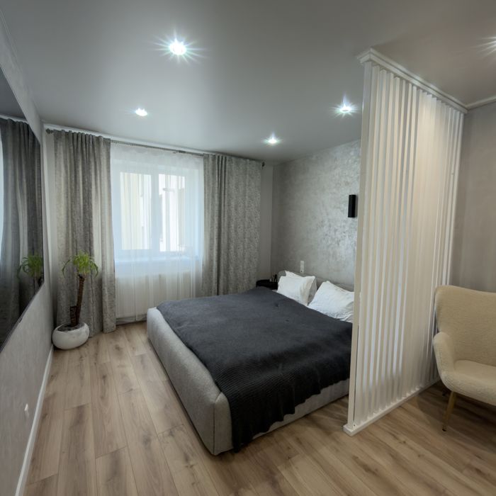 • Окрема спальня зона (відділена декоративною перегородкою)
