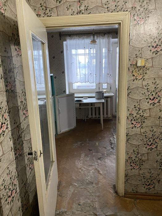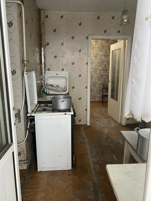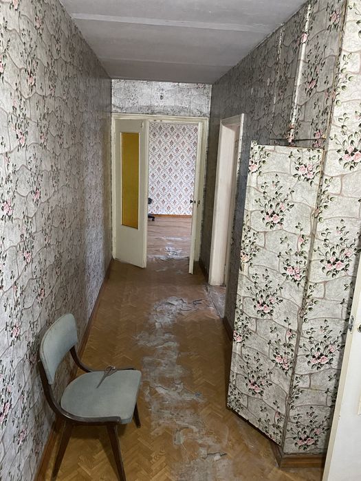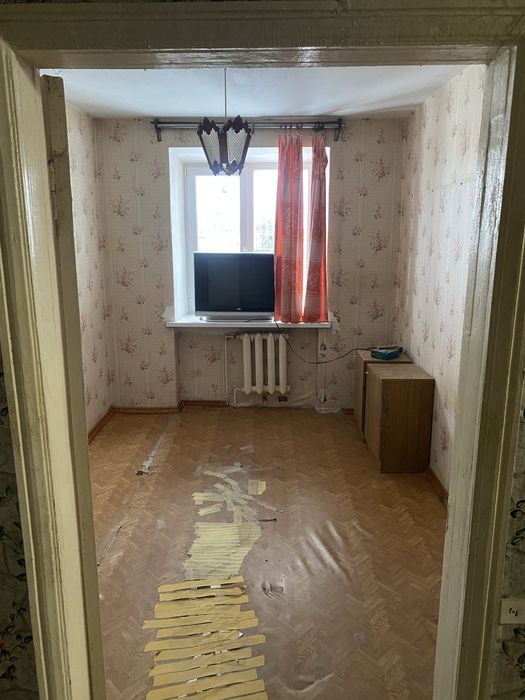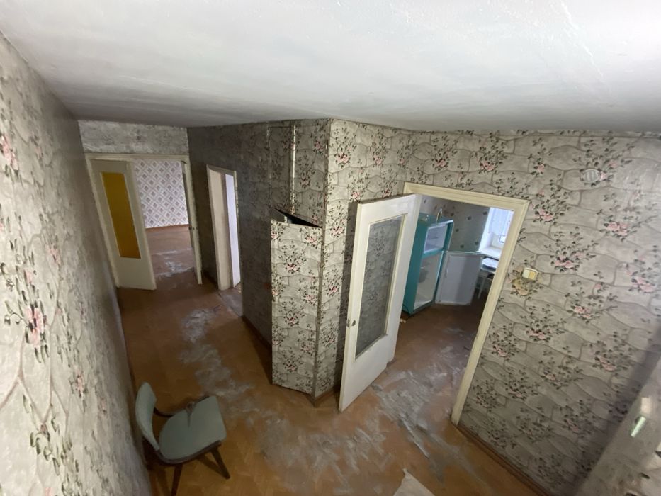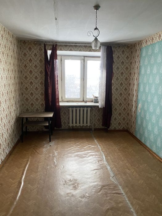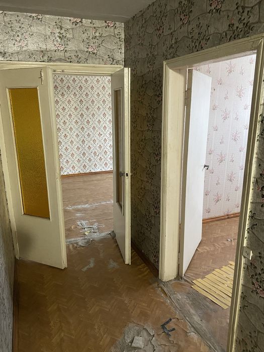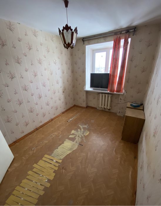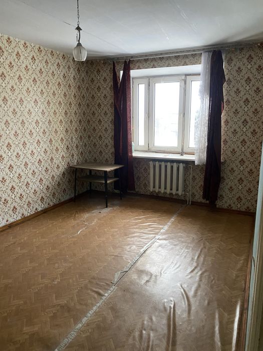 Квартира двокімнатна, на третьому поверсі. Раніше жила бабуся, винесли повністю всі меблі старі.
