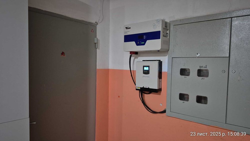 світло 24/7 при вимкненнях (встановлений інвертор (3кВт) з акумулятором (24В 100А/год)).