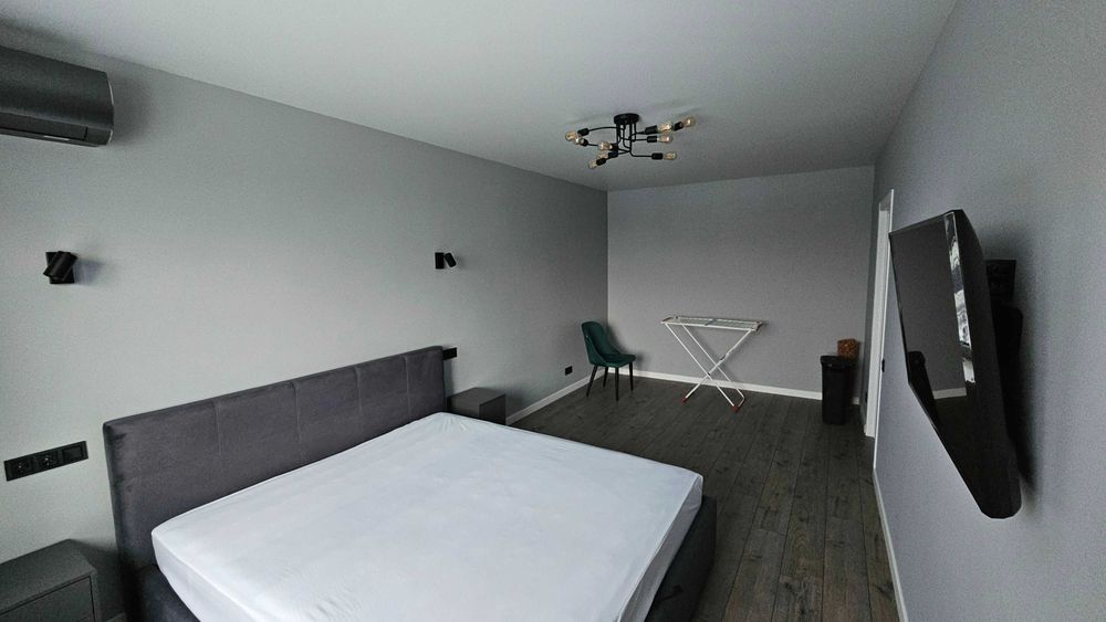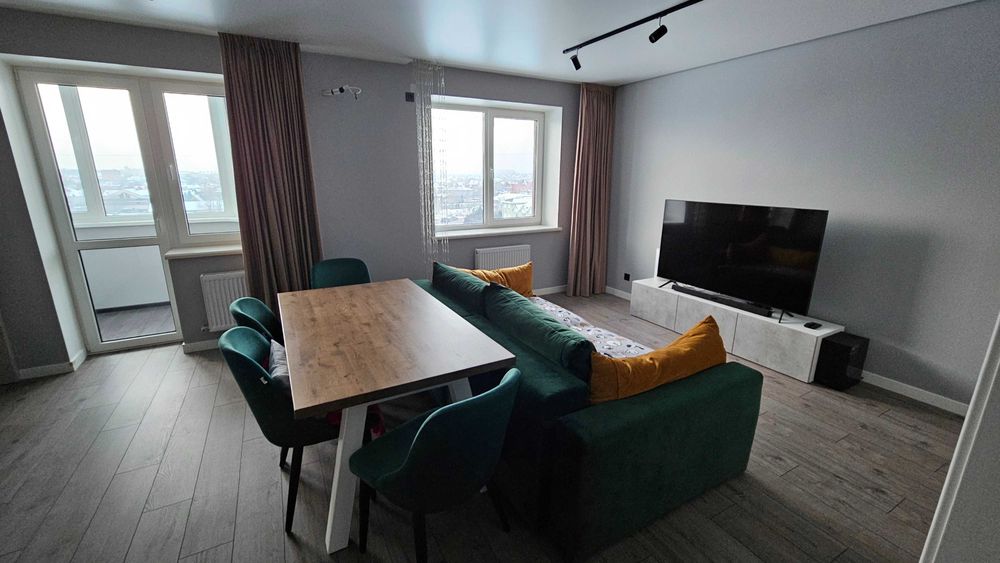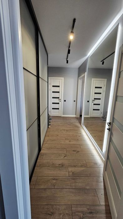 Квартира з сучасним ремонтом, виконаним з використанням високоякісних матеріалів. Робилась для себе. Не економили ні на чому. Квартирантів не було. Багато місця для зберігання речей. Підлога - дорогий приємний ламінат. Стеля - натяжна матова. Стіни - фарбовані. Німецька/італійська сантехніка. Подрібнювач відходів на кухні, кам'яна мийка. Меблі - вітчизняні преміум сегмент. На кухні стіл з натурального дерева. В кімнаті ліжко з топовим ортопедичним матрасом Венетто. Кондиціонер у кімнаті, у вітальні траса під ще один. Вся техніка від LG, Samsung, Bosch - вбудований холодильник, посудомийна машина, індукційна варильна поверхня, професійна духовка, два смарт ТВ 65 та 43 дюйми, саундбар, кава-машина Siemens, мікрохвильовка, електро чайник, бездротовий пилосмок, прально-сушильна машина. В коридорі дзеркало на всю стіну. Вхідні двері з посиленою фурнітурою.