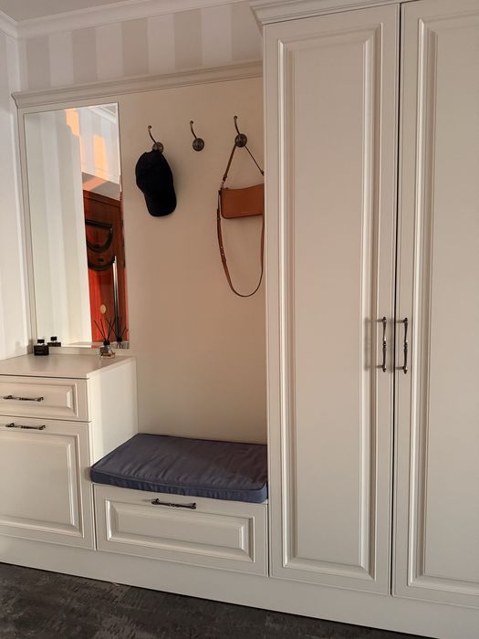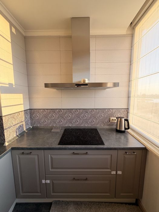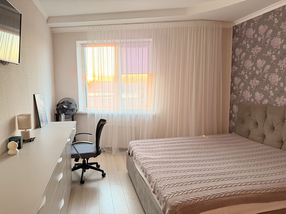 Загальна площа 65 м². Планування включає велику кухню-вітальню, окрему спальню, санвузол та простору гардеробну шафу. Квартира здається вперше, повністю мебльована та укомплектована всією необхідною технікою. Встановлена сучасна кухня з духовою шафою та варильною поверхнею, облаштована комфортна зона відпочинку та обідня зона. Квартира світла та функціональна.