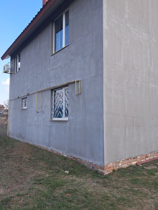 5 кімнат - 2 з фінішним оздобленням, решта - фінішна шпаклівка. Зовнішнє утеплення пінопластом 50 мм. Приватна ділянка 19 соток біля лісу.