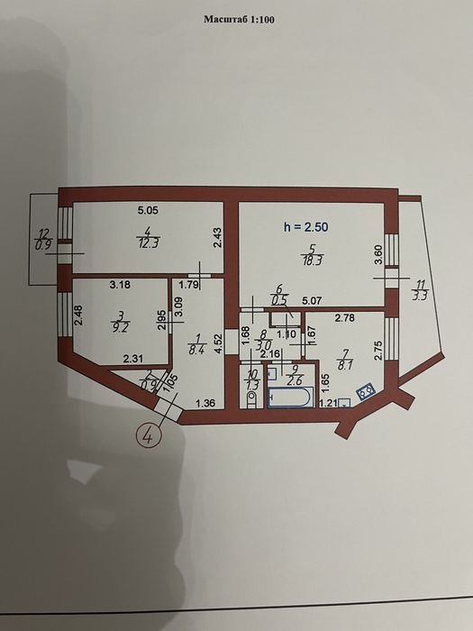 Кімнати 18,3 / 12,3 / 9,2 м², кухня 8,1 м². Є лоджія 3,3 м² (+ балкон 0,9 м²).