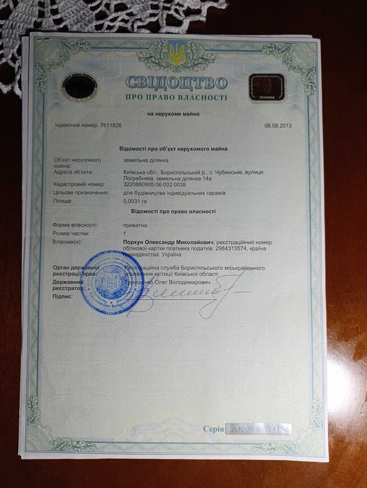 Земельна ділянка; Продам земельну ділянку в с. Чубинське вул. Погребняка 14а. під будівництво капітального гаража.