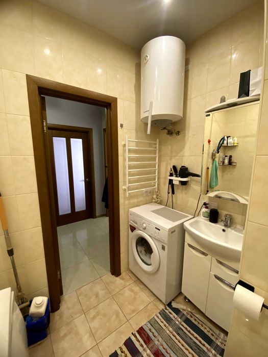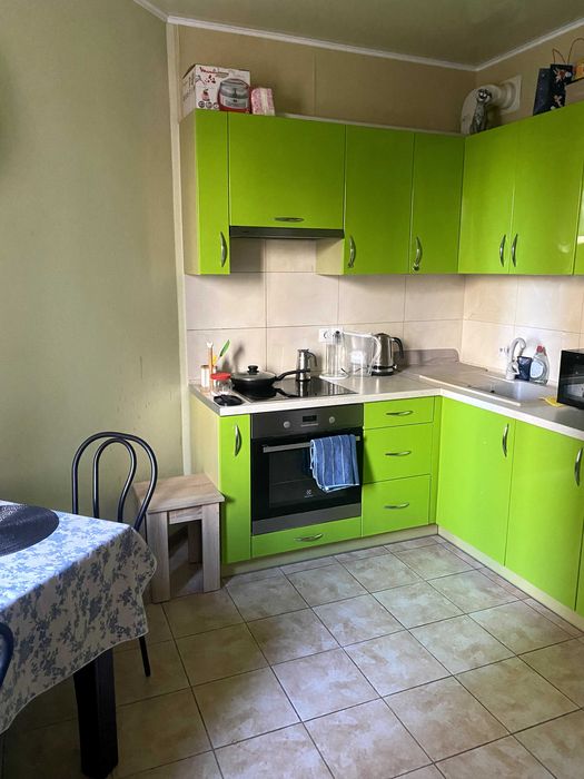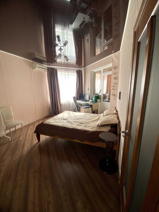 Має вбудовану кухню з технікою, шафу-купе на всю стіну, кондиціонер, класна коричнева підвісна стеля.