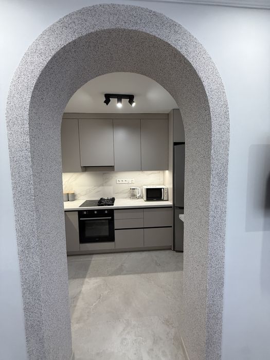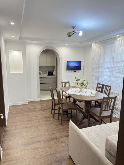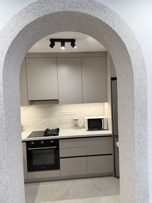 Кухня повністю укомплектована: духовка, холодильник, комбінована газова та електрична плита, мікрохвильова піч , чайник, витяжка.