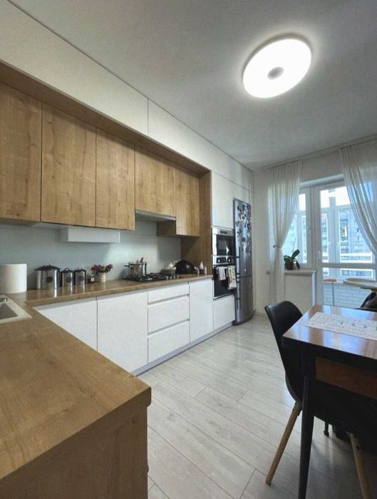 Виконаний стильний дизайнерський ремонт із якісних матеріалів та продуманим плануванням. Простір функціональний, затишний і наповнений світлом.