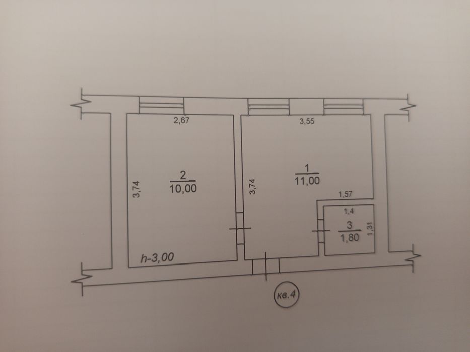 1- кімнатна 24кв(кухня+газове опалення)